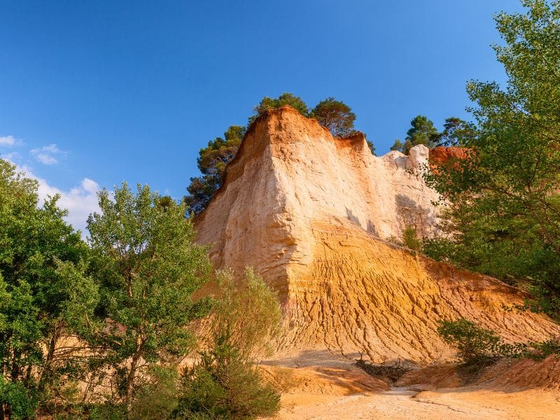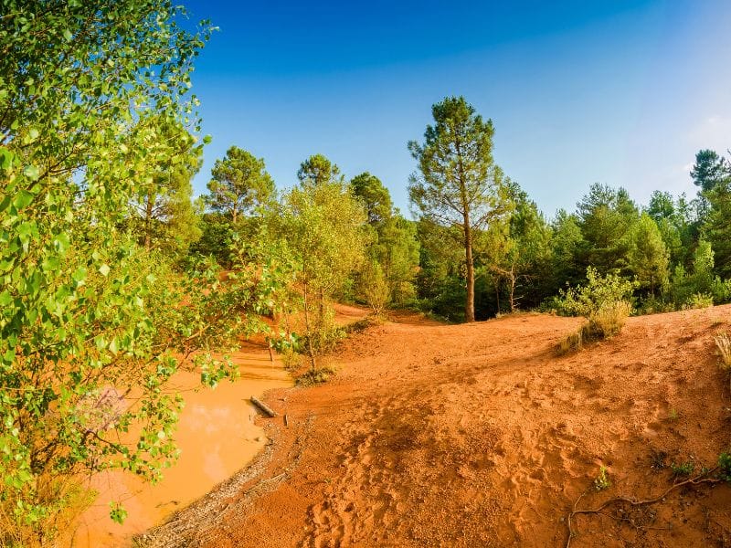 À une trentaine de minutes de La Magnanerie 1818, le Colorado Provençal vous transporte dans un paysage inattendu, aux airs de désert américain. Ces anciennes carrières d’ocre offrent un décor spectaculaire, où les falaises aux teintes rouges, jaunes et orangées créent un contraste saisissant avec le bleu du ciel et la verdure environnante.